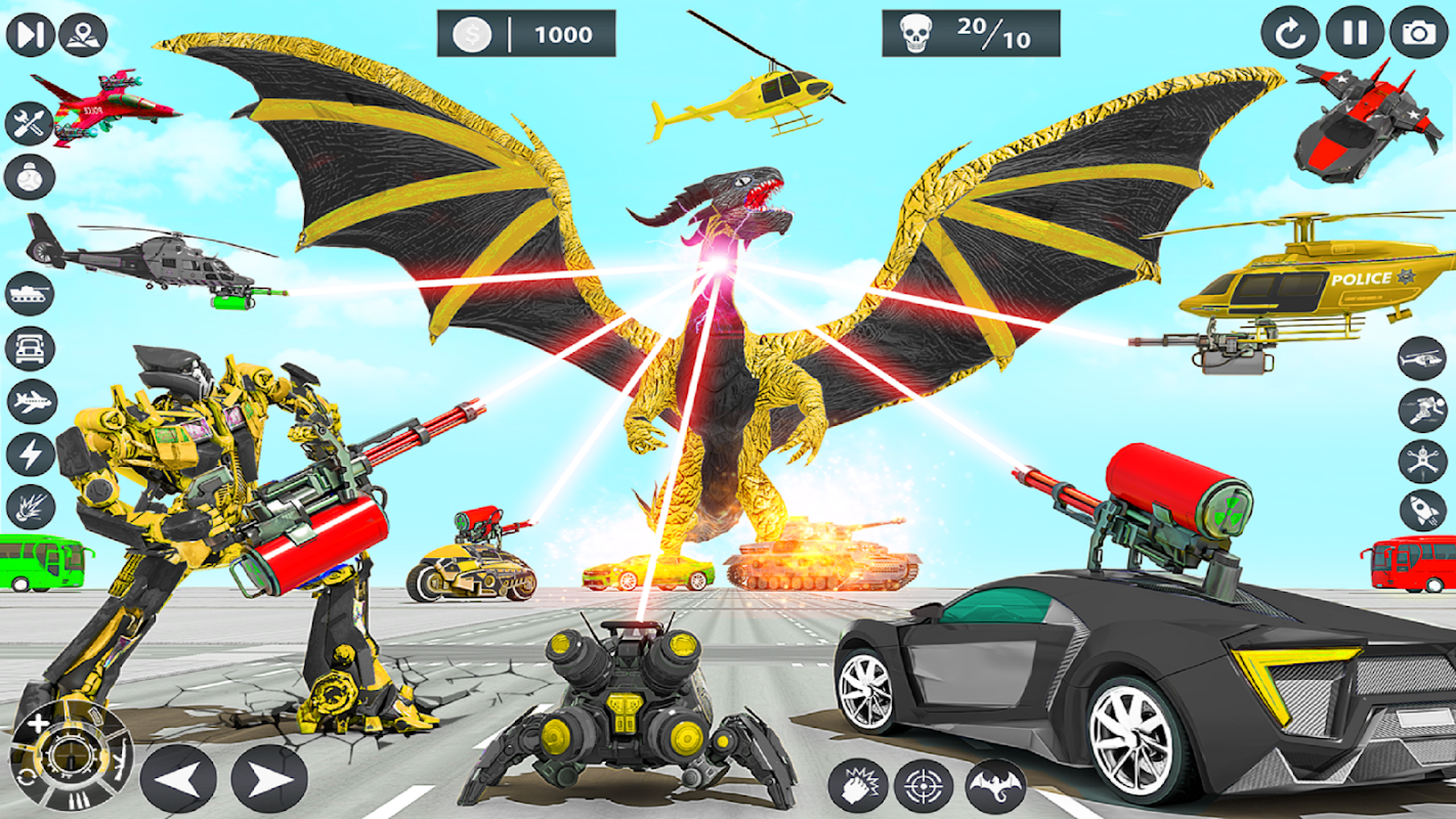 ロボット変形ゲームとしての壮大なスーパーロボット戦争ゲームは、空飛ぶロボットカー変形バトルゲームの強力なバックアップにより、プレイヤーに比類のない射撃力とロボット格闘ゲームを提供します。ドラゴンロボットカー変形ゲーム:恐竜ロボットゲームには、ロボット格闘ゲームで変形車ロボット機能を活用するための、あらゆる種類の車変形シューティングゲームが用意されています。ロボット変形ゲームにおける変形の特別な追加機能は、車破壊ゲームの強力なパワーを追加し、ロボットバトルゲームで移動中の車を思い通りに撃つことができます。