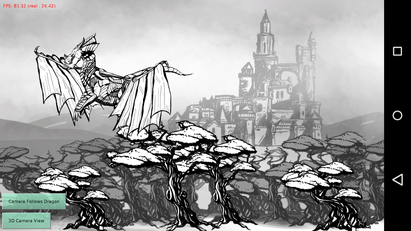 不気味な景色の上をドラゴンと一緒に飛びましょう。Castle Game Engineのデモ。