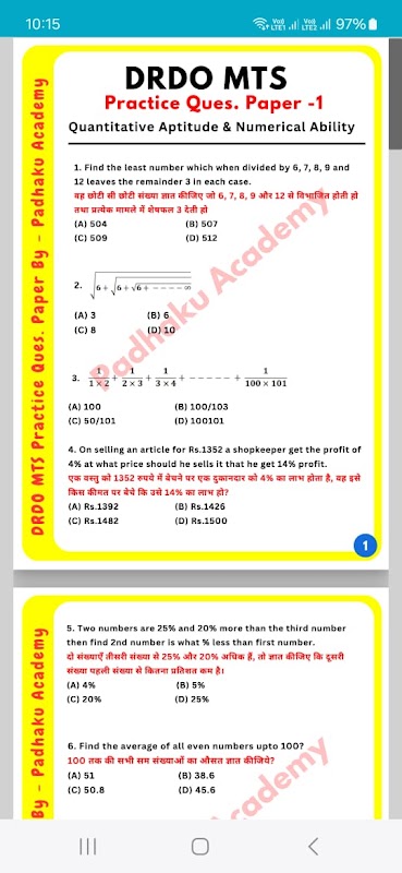 このアプリには、DRDO MTS 試験準備のための練習問題用紙が含まれています。