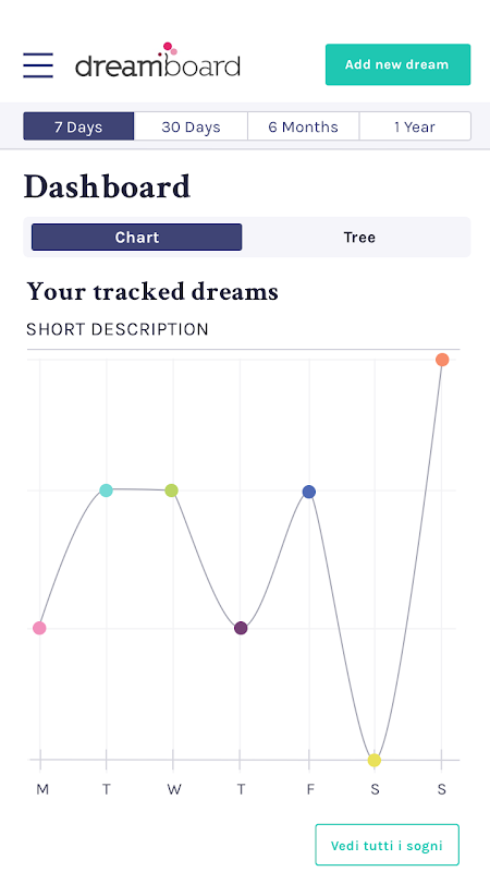 夢のグラフをクリックして、時間の経過に伴う気分や感情の傾向を観察し、熟考してください。そうすることで、夢が日常生活にどのように適合するかについて、より深く深く理解することができます。