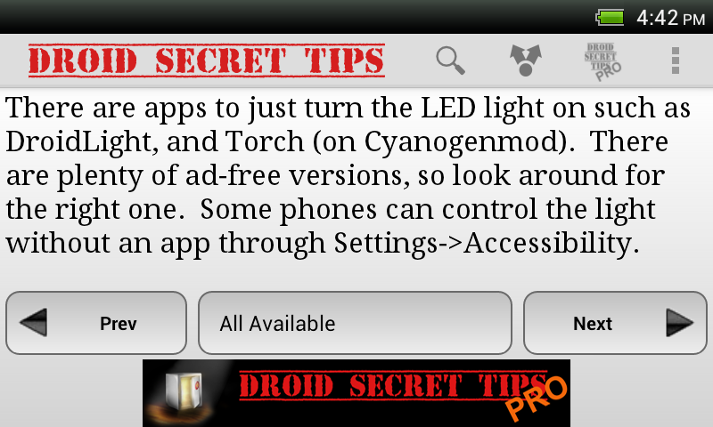 There are over 250 Android tips in this how-to app, with many more on the way. The database of Android tips is frequently updated, and the updated tips are downloaded automatically. You can search for something specific, or flip through the tips by experience level.