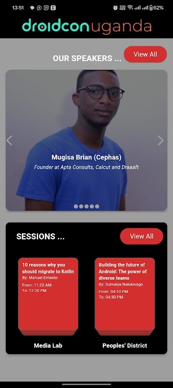 これは、ユーザーが進行中のドロイドコン ウガンダのスケジュールに従うのに役立つアプリです