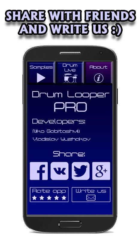 P.S. In this application, you can not create music, but you will be able to create a sample by yourself, using the virtual drum kit in the Drum Live section.