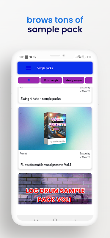 ドラムサンプルアプリでは、メロディーをワンショットでダウンロードすることもできます。