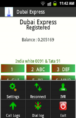 Dubai Express mobile dialer is a very easy and user friendly Android dialer for Mobile VoIp call. The dialer can run smoothly in any version of android phone. This small and easy installable app help you to connect with your service provider provided soft switches quickly. Dubai Express mobile dialer required a minimum bandwidth for connecting and originating VoIP calls. User may charge through their telecom operators for data services. It’s run smoothly in any private network. If you are a Mobile VoIP service provider please collect your demo PIN for testing this superb dialer from us.