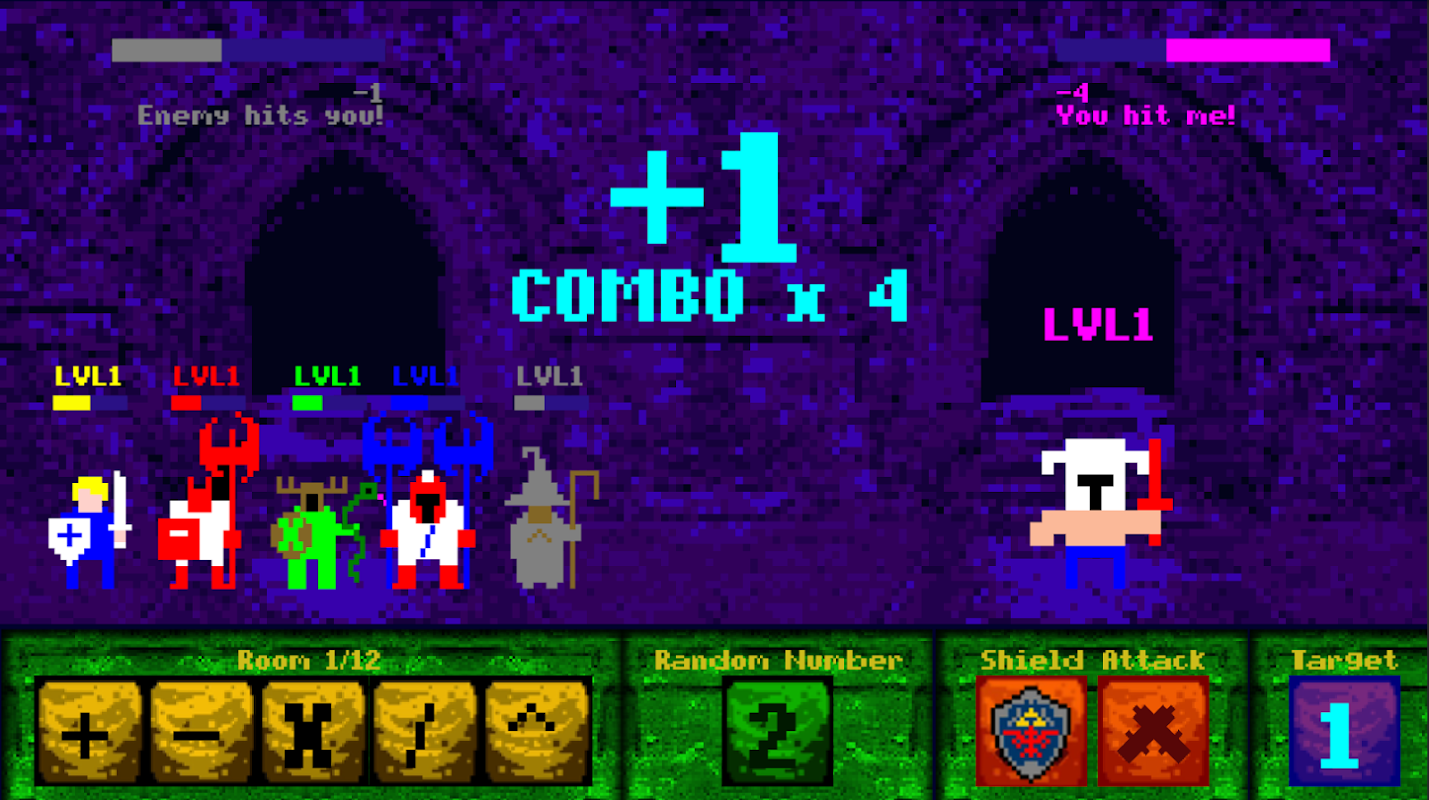 For every operations we use in attack we get multiplication bonus. Number of attack multiplied with bonus number give the hits number – how much health is substracted from HP (Health Points) of the enemy.