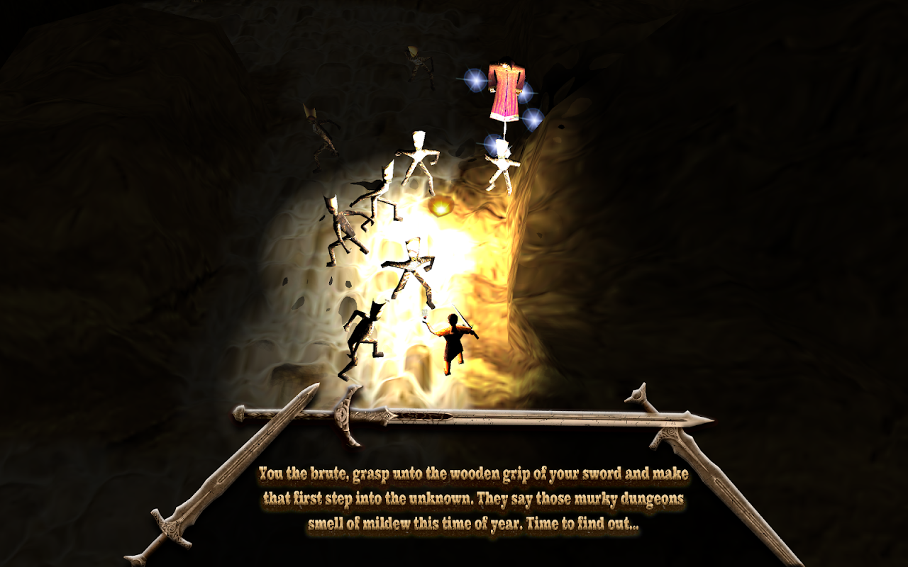 魔法使いとドラゴンが弱者を支配する世界。そこは謎と冒険に満ちた世界。魔法使いとその手下の野獣は、バリウム平原に点在する村々で平和に暮らす庶民から長らく忘れ去られたダンジョンを目指します。ダンジョンは、その上にあるグランデル山脈の荒々しい山塊に隠されています。遥か昔、人間の王たちが残し、今では忘れ去られた財宝が眠るダンジョン。邪悪な魔術によって動かされた骨やミイラに守られたダンジョン。そのダンジョンこそが、あなたが向かう場所です。魔法使いが杖を掲げ、魔法の力で門を開くと、野獣であるあなたは剣の木製のグリップを握り、未知への第一歩を踏み出します。この時期、薄暗いダンジョンはカビの臭いがすると言われています。さあ、その真相を確かめましょう…