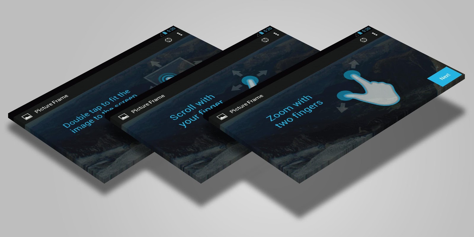 Duo Picture Frame is a gesture based image viewer that supports very high-res pictures, and allows zooming to reveal all the original picture details.
