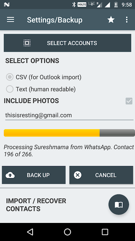 # Take backup and saved contacts as .csv, .vcf and .text file format