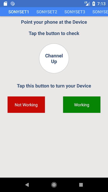 Simply point your phone towards the device and check if the Channel is changed, your DVB remote will automatically be saved in the Saved Remote Menu once you tap “Working”.