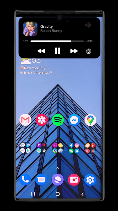 The design is like the iOS one but also fit the pill shape to your device screen.