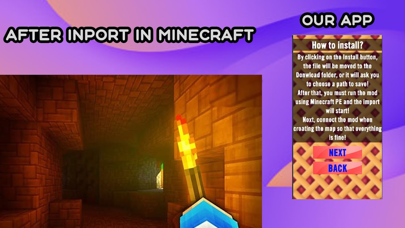 DISCLAIMER: This is an unofficial app. The name, trademark and assets are the property of the owner Mojang AB. The application helps to install and familiarize yourself with the mod for the Minecraft game, this is not a game, but an add-on with instructions! If you believe that there are trademark infringements that do not fall under the "fair use" guidelines, please contact us by email.