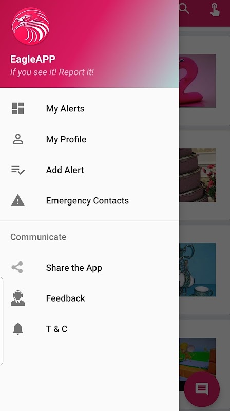 EagleAppは、登録ユーザーが犯罪アラートを報告する手段を提供します