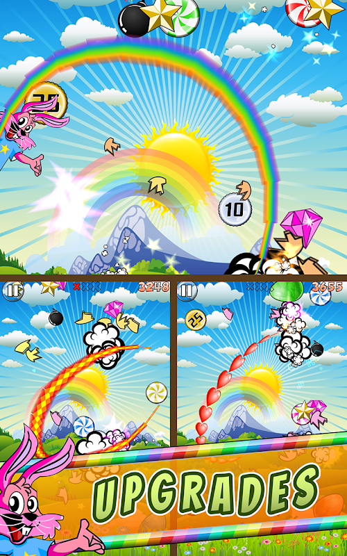 Inside the easter eggs you might any of several rewards: candy, coins, or even a rare gem or star! Collect all the rewards and goodies by swiping and slashing, then use them to acquire upgrades.
