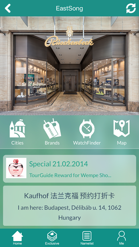 The EastSong Tour Guide Portal was designed for Chinese tour guides visiting Europe with their tour group. In the app you can find the list of EastSong partner stores, some basic information about them like opening hours and location map; you can learn about the jewelry collections of exclusive brands. We also provide you a chat room, where you can exchange experiences gained while cooperating with EastSong and communicate directly with the eastsong help desk in Frankfurt.