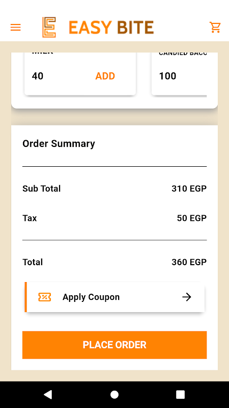 Easy Bite はリクエスト注文のための小規模レストラン アプリです