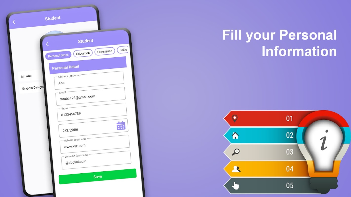 履歴書の書き方のヒントを参照し、必要な情報を入力して、PDF 形式の履歴書を入手してください。内定を得るために完璧な履歴書を作成できるようになりました。このEasy CV Maker & Resume Builderアプリは、職業履歴書を作成したい初心者と経験者の両方に役立ちます。最高の仕事を獲得した履歴書テンプレートを使用して、数分で最高の専門的な履歴書を入手しましょう。これは、誰もが就職に有利な履歴書を作成し、内定を獲得できる完全無料の履歴書ビルダー アプリです。シンプルでプロフェッショナルかつモダンな履歴書を作成します。これで、誰かに「履歴書を作成して」と言う必要はなくなりました。この無料の履歴書ビルダーおよびプロの履歴書作成アプリをインストールし、このインテリジェントな履歴書作成アプリを使用して無料で履歴書を作成するだけです。