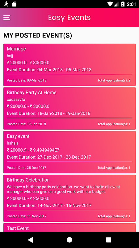 In this section you can post your event requirement. We will show this posted event to all event manager's. They will bid on your event. you can choose best from them.