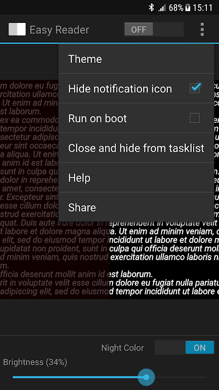 Easy Reader allows you complete control over your screen brightness to allow comfortable reading by night.
