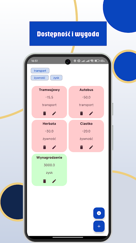 Śledź swoje wydatki i dochody w różnych kategoriach.