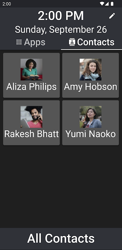 Elder Launcherは、お気に入りのアプリや連絡先をホーム画面に固定してすばやくアクセスできるようにします。