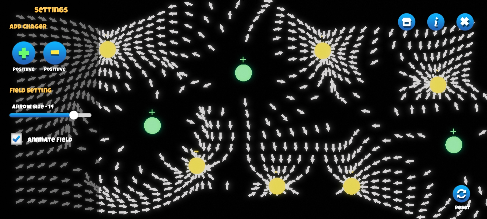電荷の物理を理解するのに便利なアプリ。