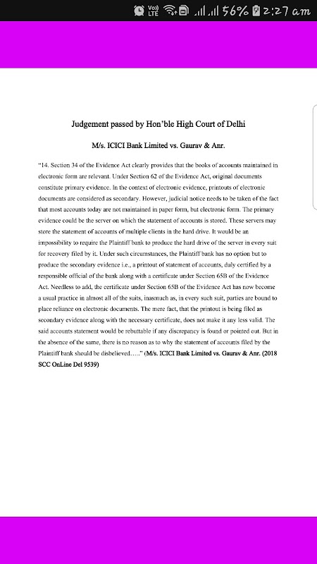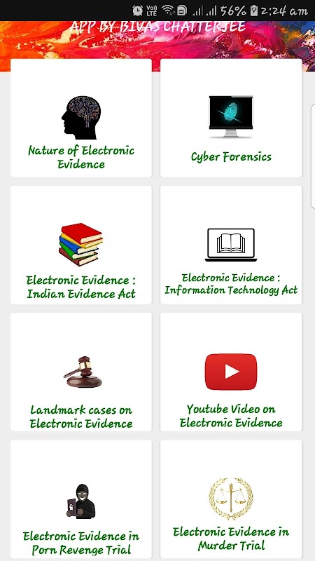 This app deals in depth on very peculiar nature of electronic evidence, Cyber forensics , chain of custody. This app also provides portion of Indian Evidence Act and Information Technology Act relevant to electronic evidence. This app contains the relevant portion of the landmark judgements on electronic evidence. More than twenty five judgements have been discussed. Four important criminal cases which depends wholly on electronic evidence have also been discussed. The app is connected with a YouTube video which related to electronic evidence. The may provide an overall idea of electronic evidence which is the most important evidence in today's world.