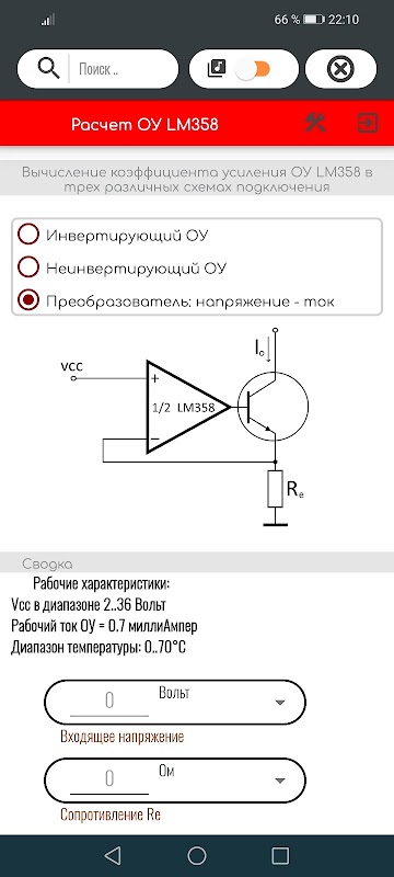 Electronic Toolsは、電子機器や電気機器のほとんどの種類の計算に使用できる強力なツールです。ここには、さまざまな種類の計算に役立つ多くの関数と、ヘルプ情報があります。アプリが含まれています: