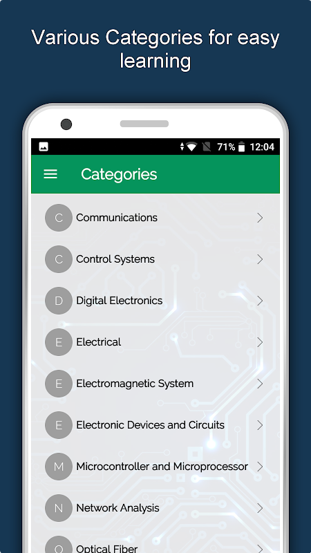4000を超える電子用語、さまざまな電子計算機、電子式が満載のこの電子&通信辞書アプリは、学生、教師、または電子恋人であるかどうかに関係なく、すべてのクエリに対応する幅広いガイドです。この電子工学通信ガイドには、簡単に習得するための電子式や方程式がたくさんあります。このオフラインエレクトロニクス工学アプリはあなたの知識を磨き、あなたの学習に挑戦するために多数のエレクトロニクスクイズがいっぱいです。