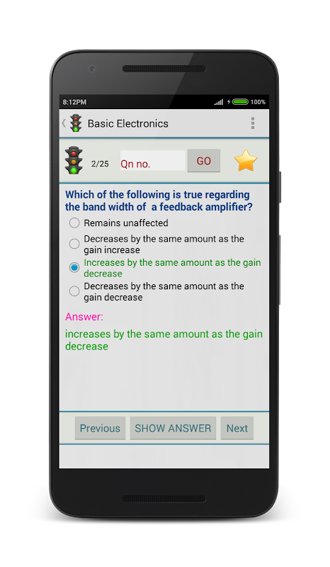 All the questions ( electronics interview questions ) are selected to cover from basic to advanced concepts, so that any candidates can get maximum benefit out of it. We hope, Electronics Quiz - MCQ App will be really helpful for candidates/student/interviewee