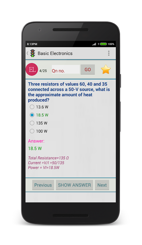 Basic Electronics quiz application is also useful for electronics and communication engineering students to learn basic electronics.