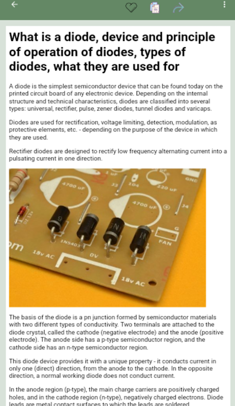「ゼロからのエレクトロニクスハンドブック」は、エレクトロニクス分野の知識をマスターしたい初心者無線アマチュアや電子技術者に役立つアプリケーションです。 アプリケーションには、さまざまな電子部品、その種類、名前、および目的に関する情報が含まれています。 「Electronics Handbook from scratch」には、受動電子部品と能動電子部品の両方の説明があります。