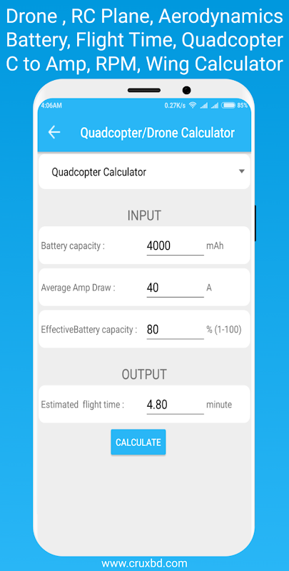 ドローン / ラジコン飛行機 / クアッドコプター電卓