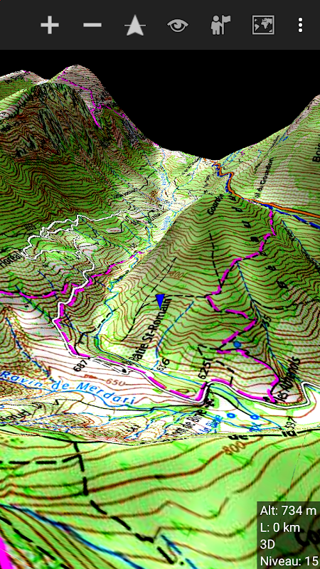 。 SRTM3形式の標高データを使用する(デバイスに保存され、大きな地図に最適)