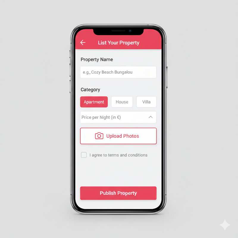 無料&スピーディーな登録:5分以内でリスティングを作成できます。写真の追加、料金設定、お部屋の説明など、必要な情報を入力してください。