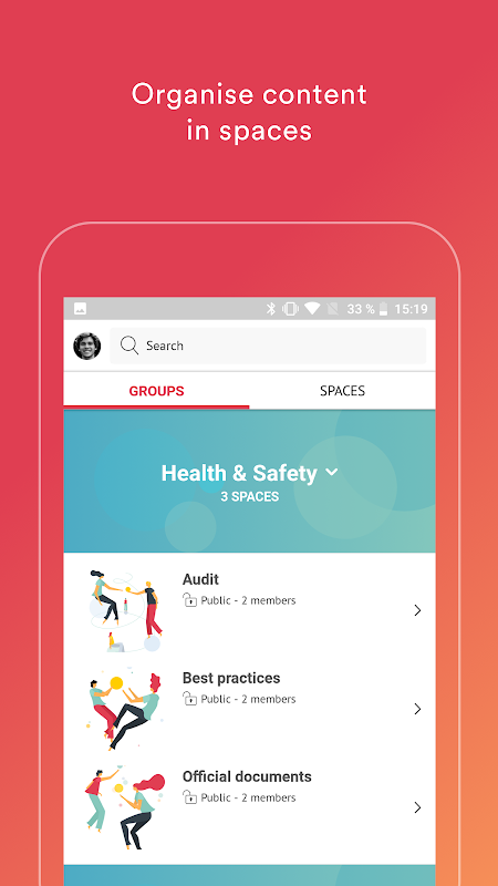 アクセス - 外出先でも、会社全体の知識と活動にアクセスできます。どんな仕事場でも最新情報を入手してください。従業員名簿にすばやくアクセスして、いつでもどこでも専門家を見つけて連絡できるようにします。