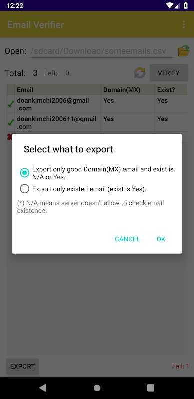 このアプリは、あなたの電子メールの連絡先リストを確認できます。必要なのは、このアプリにあなたの電子メールのスプレッドシートをインポートし、[確認]をクリックします。