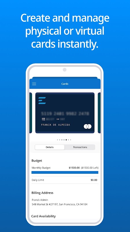 チームのT&Eニーズに合わせて仮想カードまたは物理カードを発行します。旅行の必要性が少ないチームメンバーに、使い捨ての仮想カードを発行します。