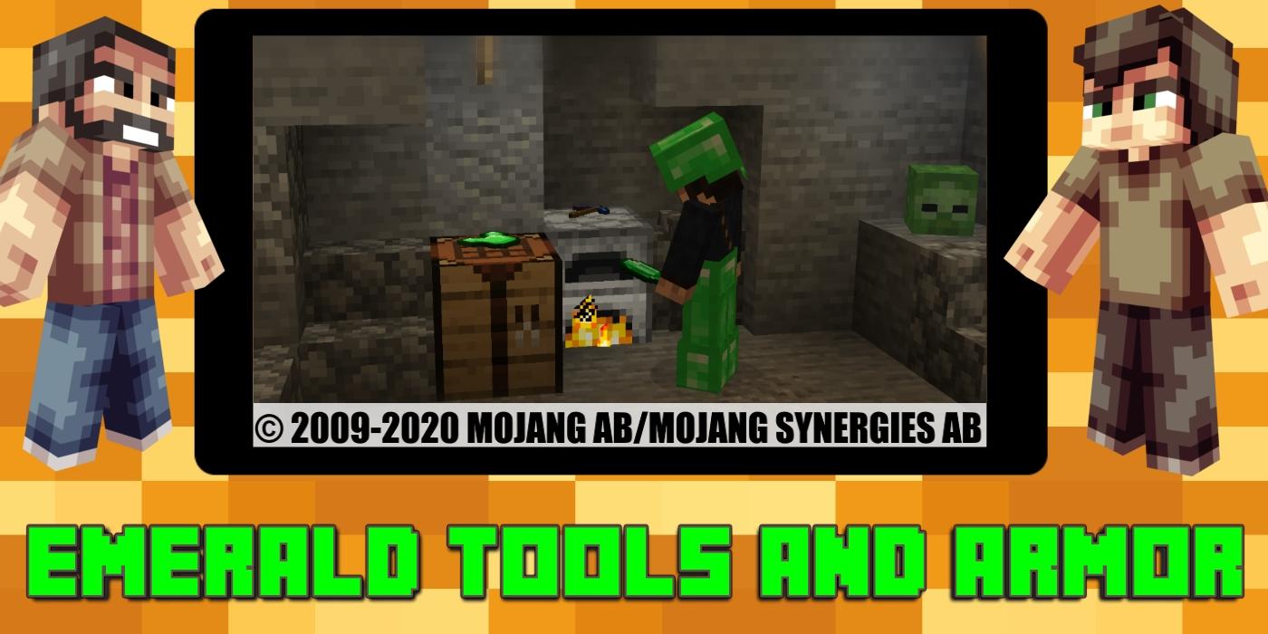 This addon adds emerald tools and item to your game. The Emerald Tools and Armor mod will add the ability to create emerald armor and ruby emerald in Minecraft PE, which is sure to come in handy in battles. Armor made of emeralds will be very durable and will withstand even the blows of the most powerful mobs, and thanks to emerald weapons you will kill opponents with a few blows.