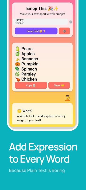 Emoji This は、言葉に創造性、楽しさ、表現力を加えるための究極のツールで、普通のテキストを特別なものに変えます。