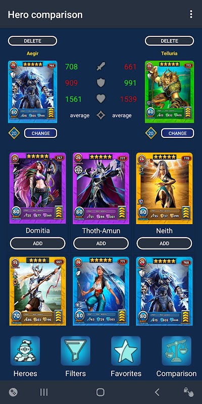 -各ヒーローについて、完全な情報が提供されます:特性、能力、エンブレム計算機、機能、および使用のヒント。