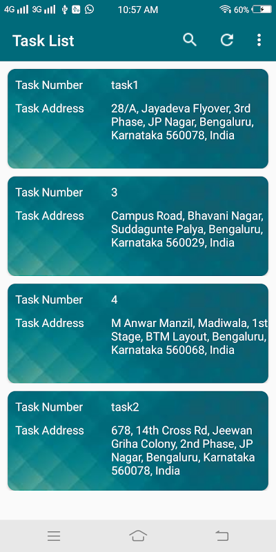 After login with the app employee will see his/her total task details and before starting any task employee should open the google map on