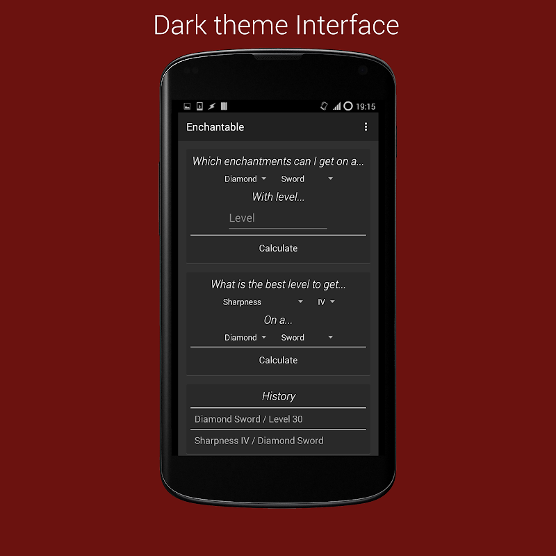 Both an enchantment calculator to look up the best level to get an enchantment AND an enchanting calculator to discover the different enchantments you can get with a certain level for a tool!