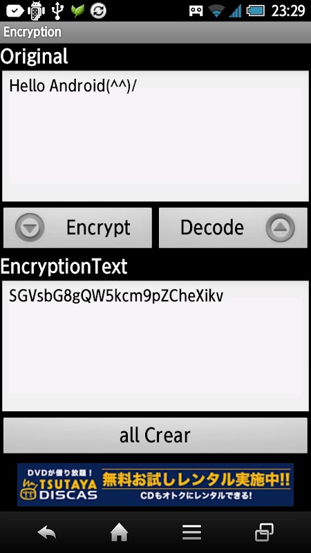 暗号化したい文字を入力し、暗号化ボタンを押すと暗号文が作成されます。