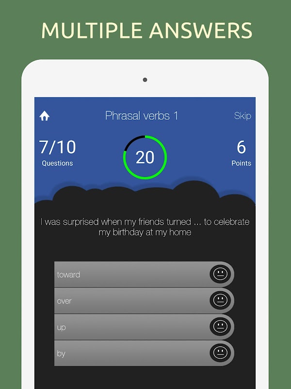 自分自身に挑戦 - 英語のイディオム、句動詞、スラング、不規則動詞と前置詞のあなたの知識をテストします。英語クイズは1750例が含まれています!あなたの英語レベルを向上させ、あなたの語彙を展開します。