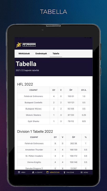 これは、Fehérvár Enthroners の公式モバイル アプリケーションです。チームに関する最新ニュースを受け取りますか?すべての試合のリアルタイム結果を見たいですか?チームの試合や選手のビデオをいつでも見ることができます。