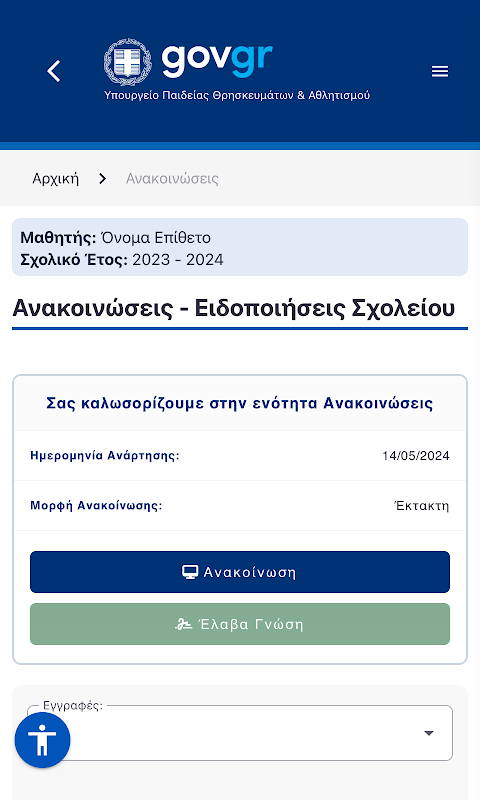 e-Parents アプリケーションは、市民保護者に学校とのライブかつ永続的なコミュニケーション チャネルを提供し、保護者が学校単位と対話するための次のテーマ別モジュールを実装します。