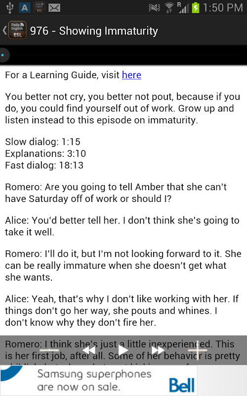 This is a an helper application for beginner to intermediate to advanced English learners. This independent application has been made by ImApp Soft, who which is a fan of the very popular podcast for them, English as a Second Language Podcast at ESLPod.com.