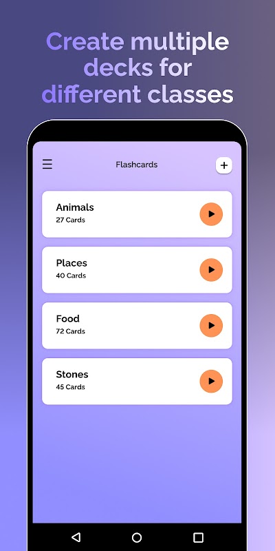 学習資料を簡単に整理できます。アプリの直観的なデッキ管理システムにより、フラッシュカード デッキを簡単に作成、編集、分類できるため、学習セッションの生産性が向上し、効率化されます。