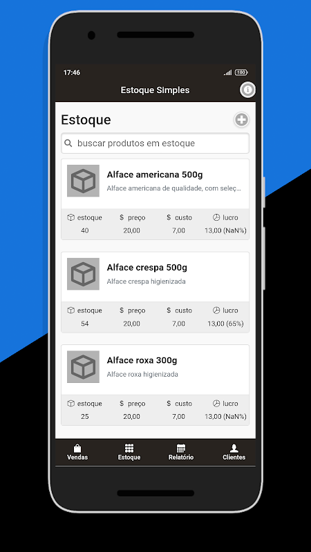 Estoque Simples アプリケーションを使用すると、製品在庫、販売、顧客を管理できます。